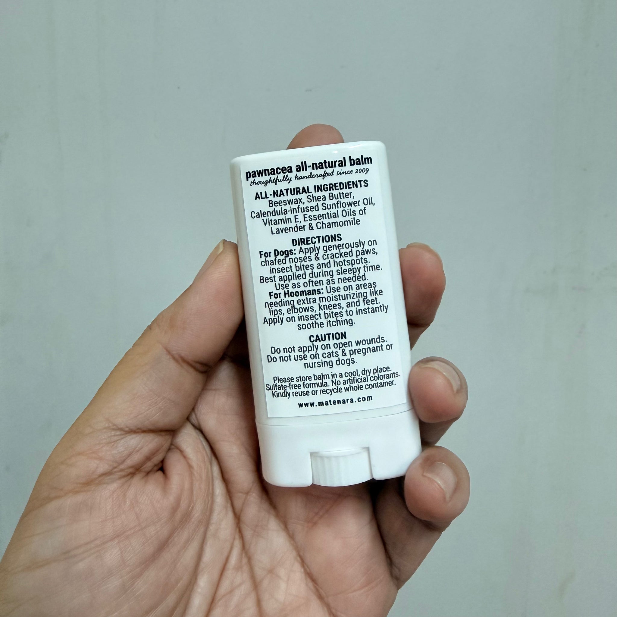 How to use on people: Use the balm on areas needing extra moisturizing like elbows, knees, and feet. Apply on insect bites to soothe itching. Familiar with chafed skin on your nose during and after a cold? The Pawnacea Balm works on that, too!